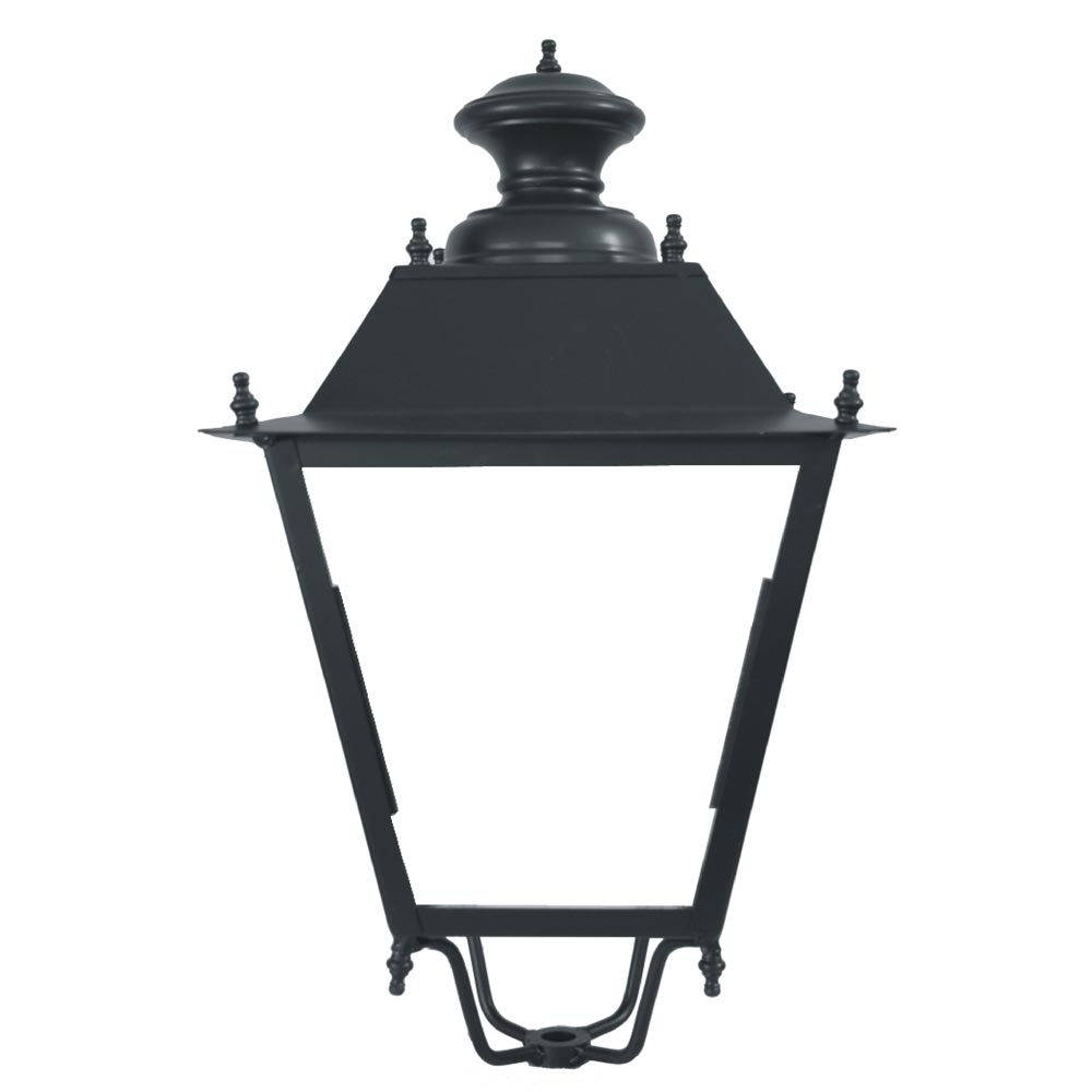 SIN INSTALACION ELECTRICA. Sobremuro modelo grande. Realizado en tubo redondo de 50 (25cm) con adornos de aluminio fundido. Pintado en poliéster termoendurecido. Acabados más habituales en negro, oxirón y verde carruaje.