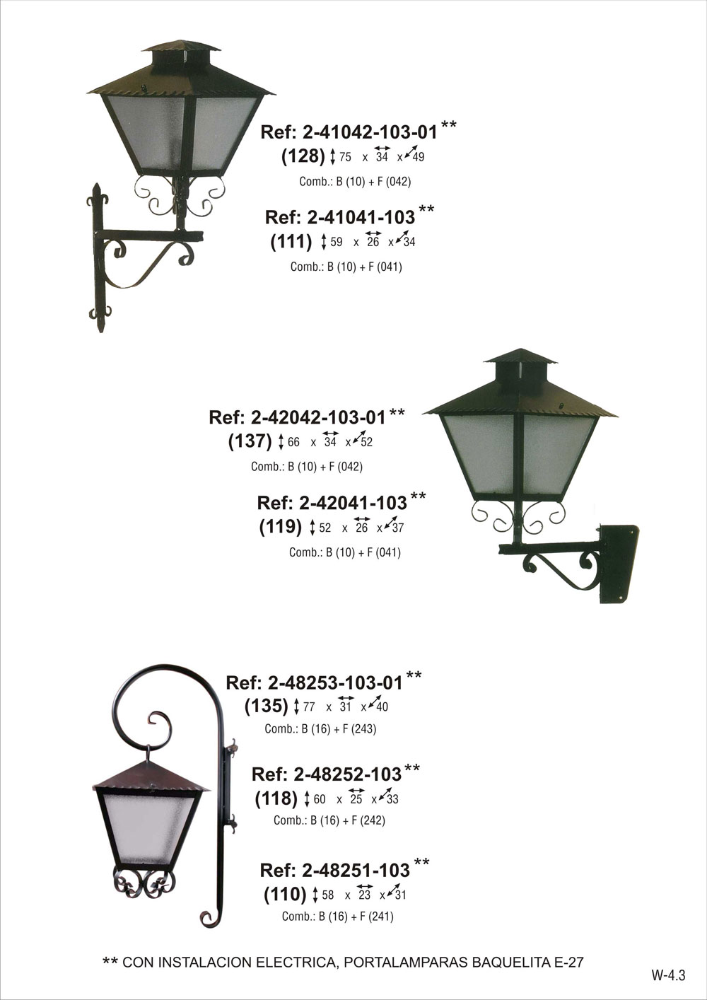CON INSTALACION ELECTRICA, portalámparas E-27. Farol de pared realizado en chapa de acero con brazo pescante grande de tubo de hierro. Pintado en poliéster termo endurecido. Acabados más habituales en negro, oxirón y verde carruaje. Consultar otros tamaños.