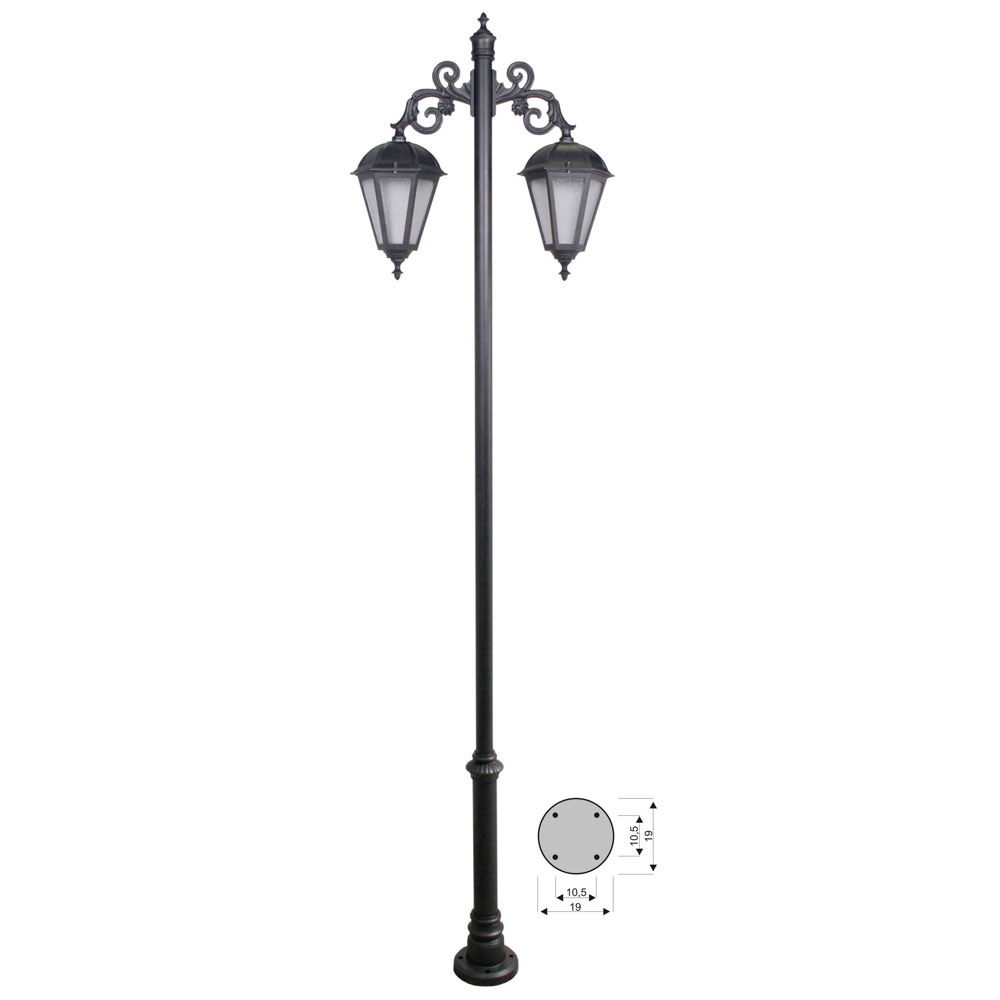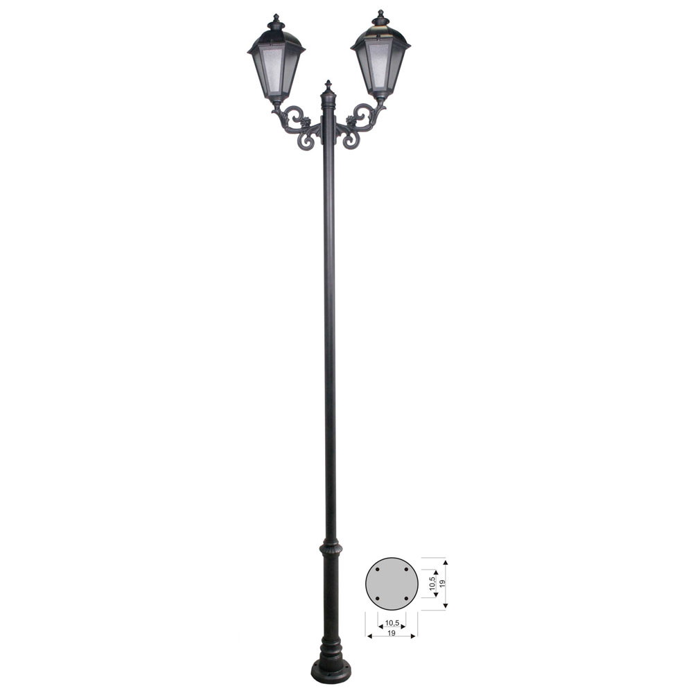 SIN INSTALACION ELECTRICA. Tubo 25x25, pletina del soporte 30x6mm y pletinas de los adornos 25x4mm. Pintado en poliéster termo endurecido. Acabados más habituales en negro, oxirón y verde carruaje.